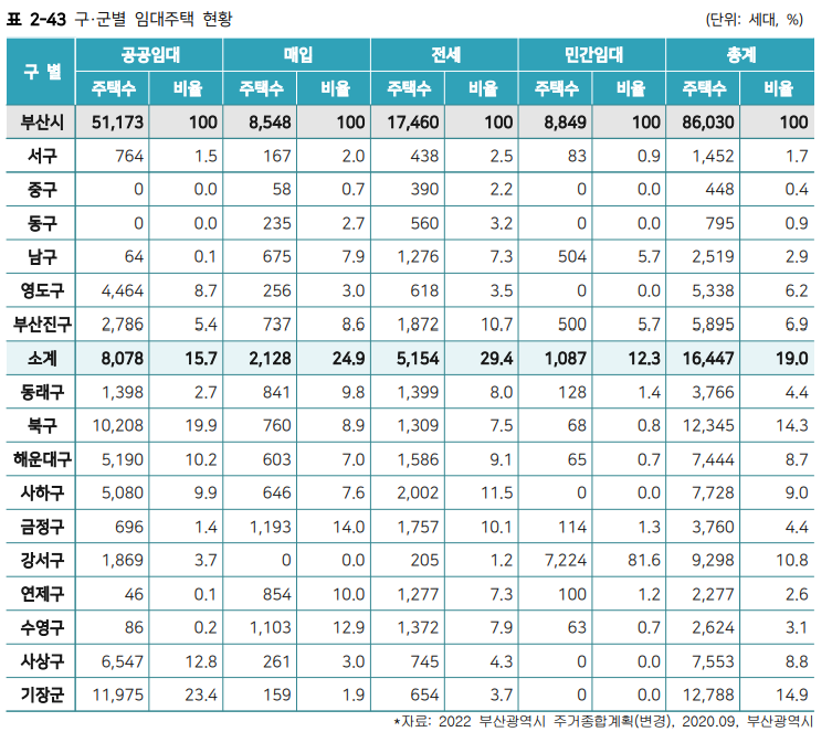 ※부산시의 임대주택은 86,030호이며,