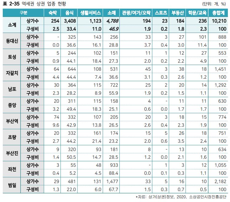 부산역·초량역에서는 음식 및 숙박업