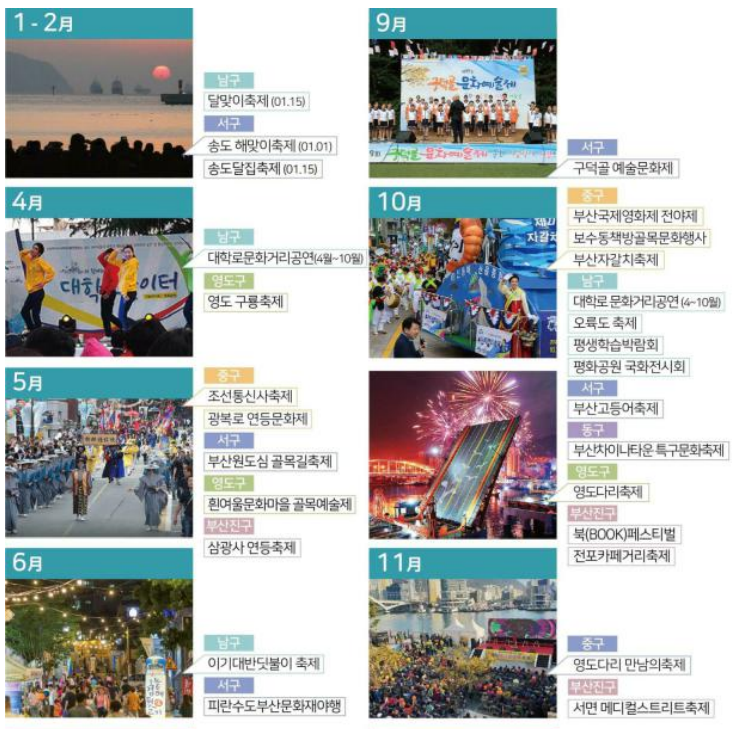 ※각 구별 축제 및 이벤트 현황을 보면