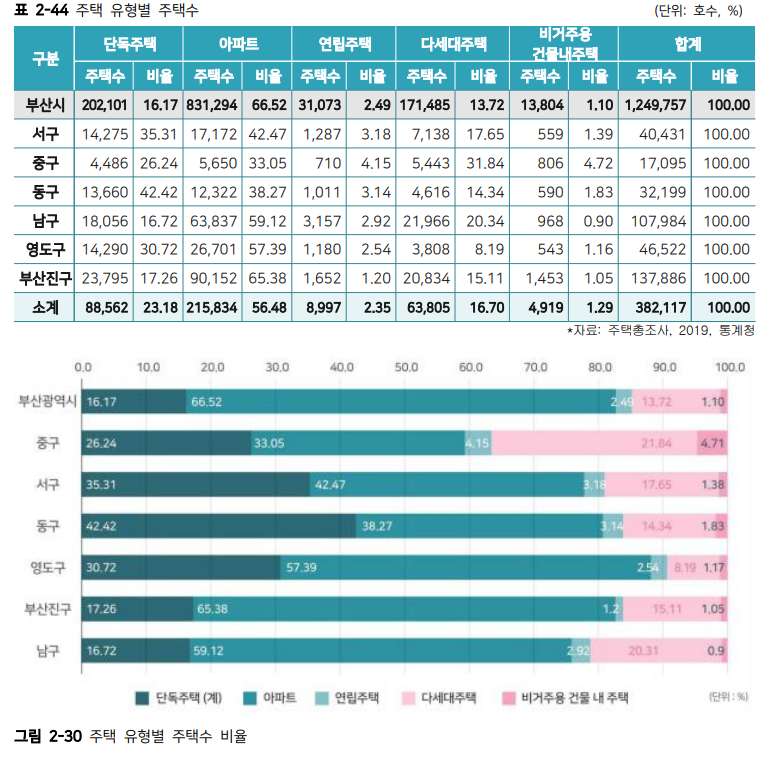 ※ 부산시의 주택 유형별 주택은 아파트가