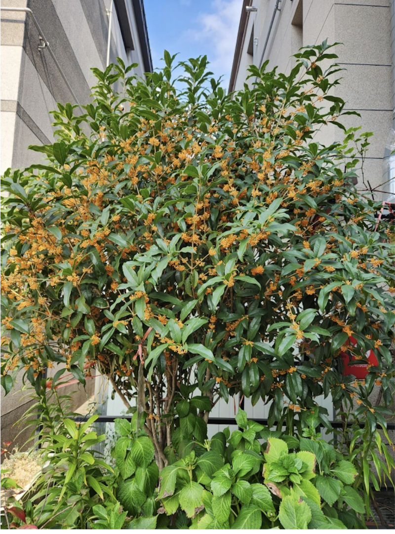금목서의 이름은 ‘금(金)’과 ‘목서(木犀)’의 합성어로,