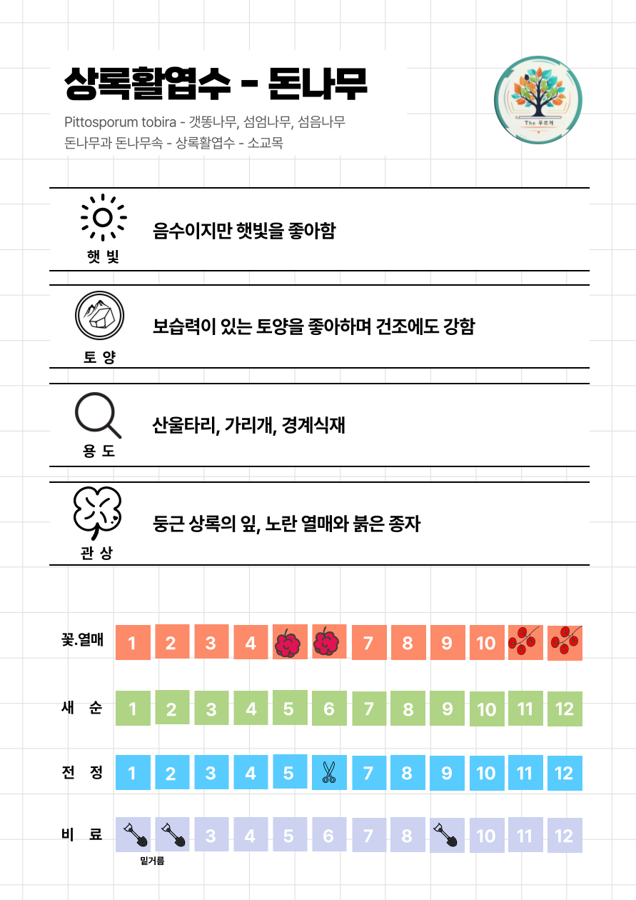 외형: 돈나무는 높이 2~4m까지 자라는