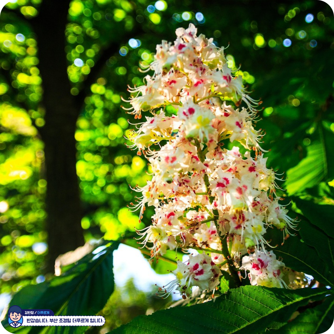 5월 꽃이 위로 솟아 피기 때문에 나무 아래에서 올려다보는 방식이 가장 아름답습니다.