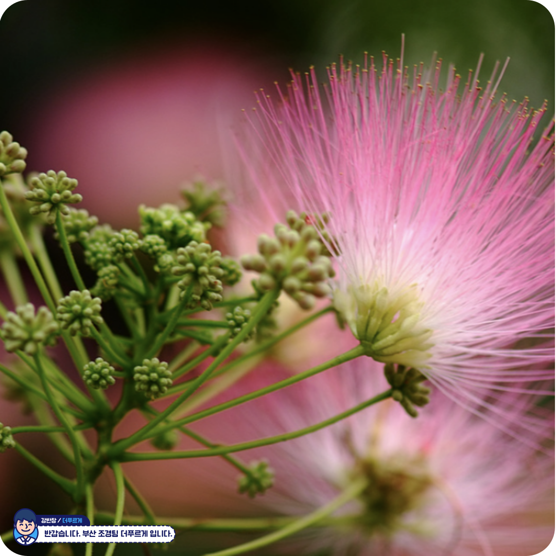 • 꽃: 6~7월경에 피며, 솜사탕처럼 부드러운 분홍빛 꽃
