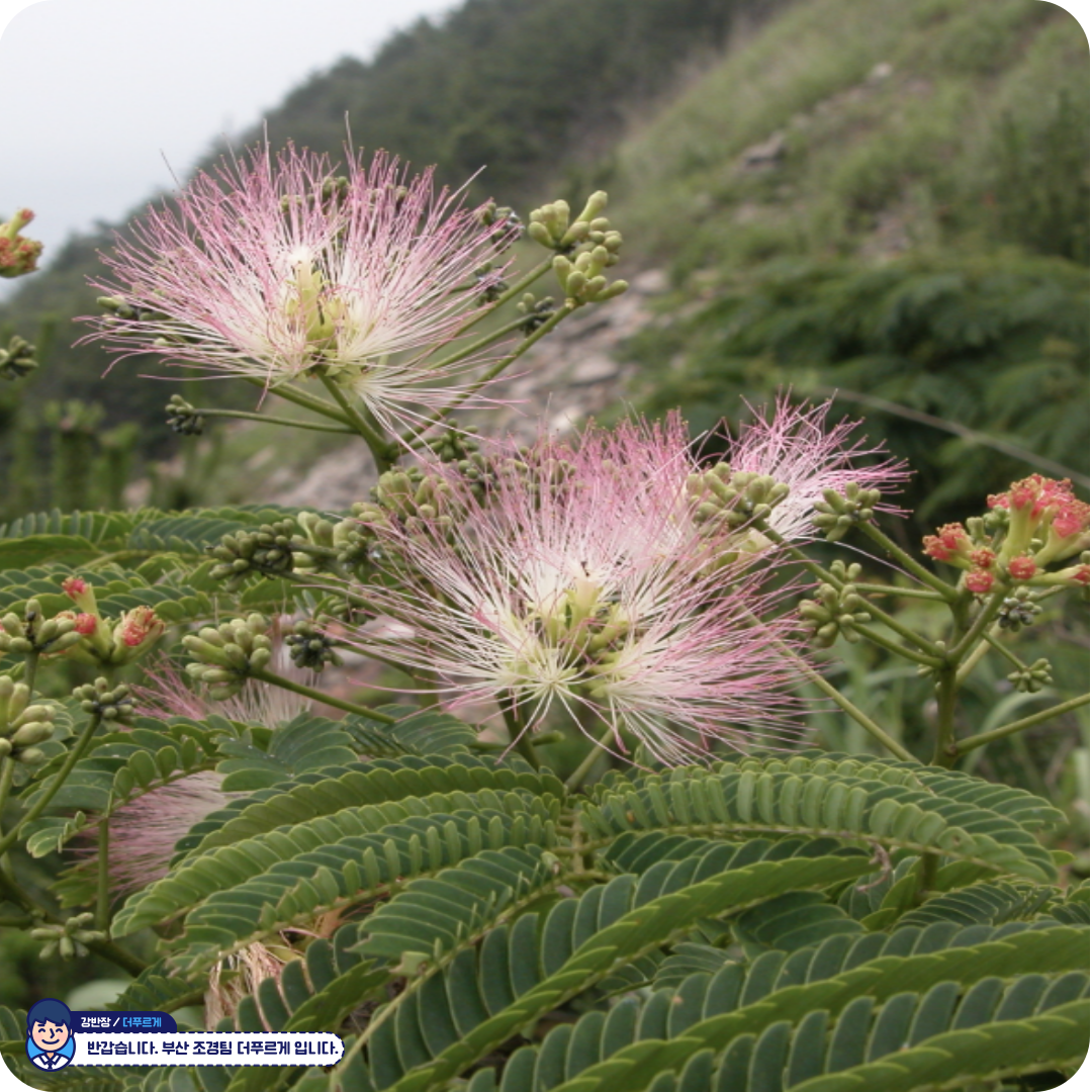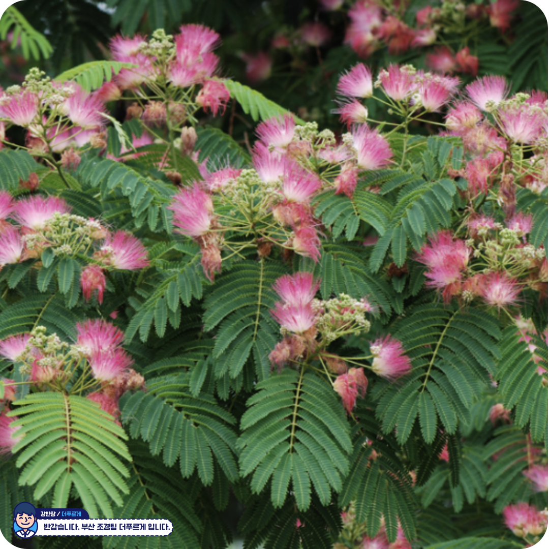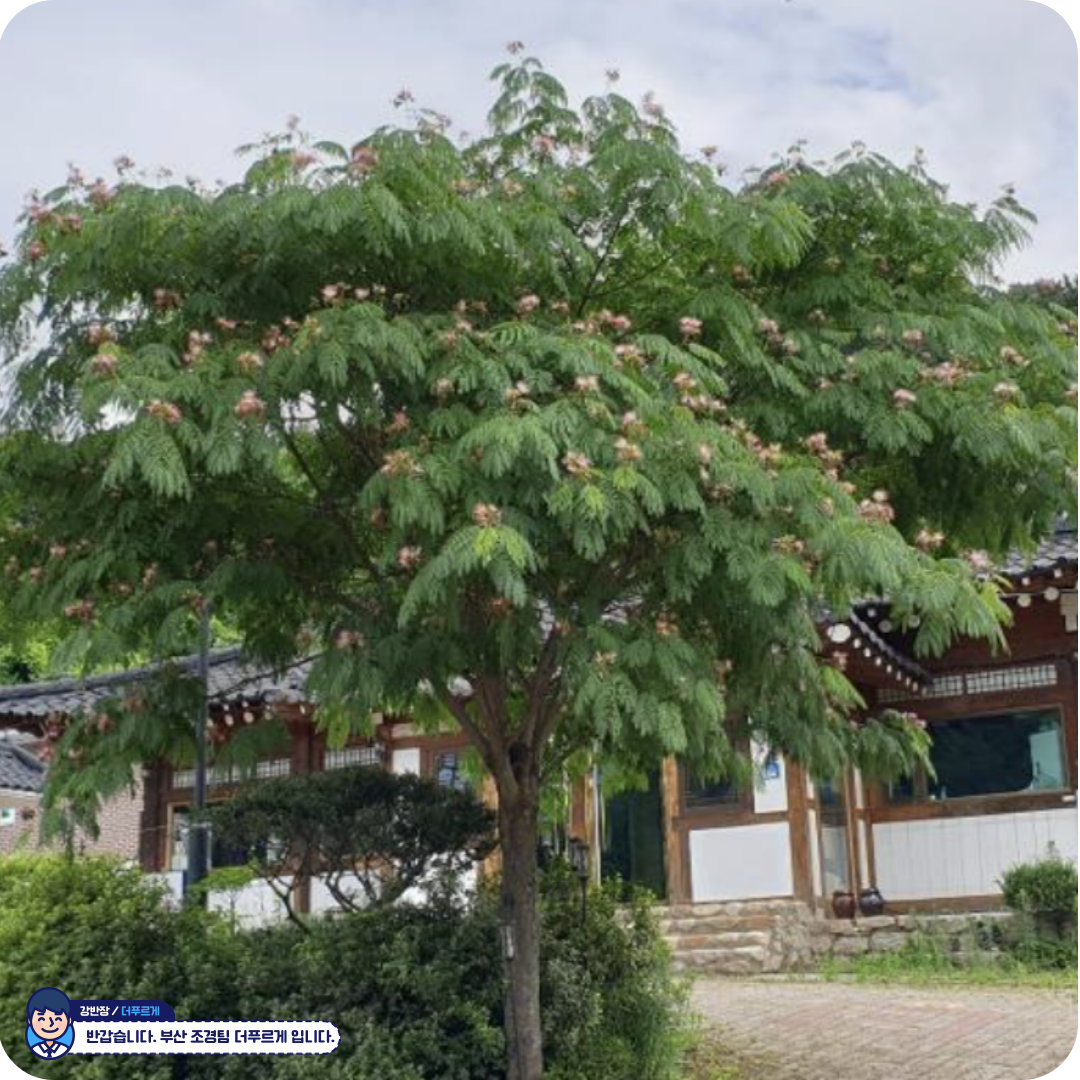 🌳 자귀나무 – 밤하늘의 별처럼 피어나는 분홍빛 여운