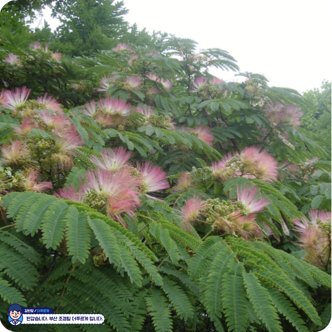 🌳 자귀나무 – 밤하늘의 별처럼 피어나는 분홍빛 여운