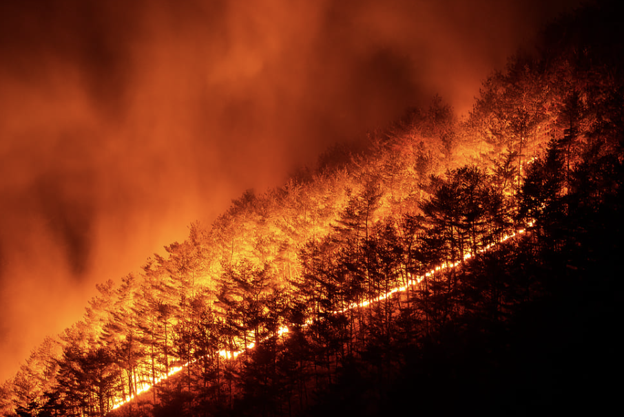 산불 등의 재난 상황에서 수분이 많은 잎과 가지를